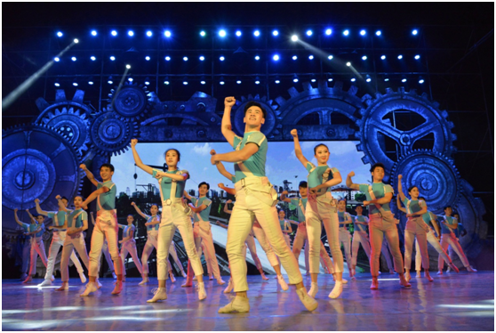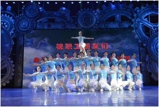 晚會(huì)在動(dòng)感十足、活力四射的開(kāi)場(chǎng)舞《咱們工人有力量》中拉開(kāi)帷幕